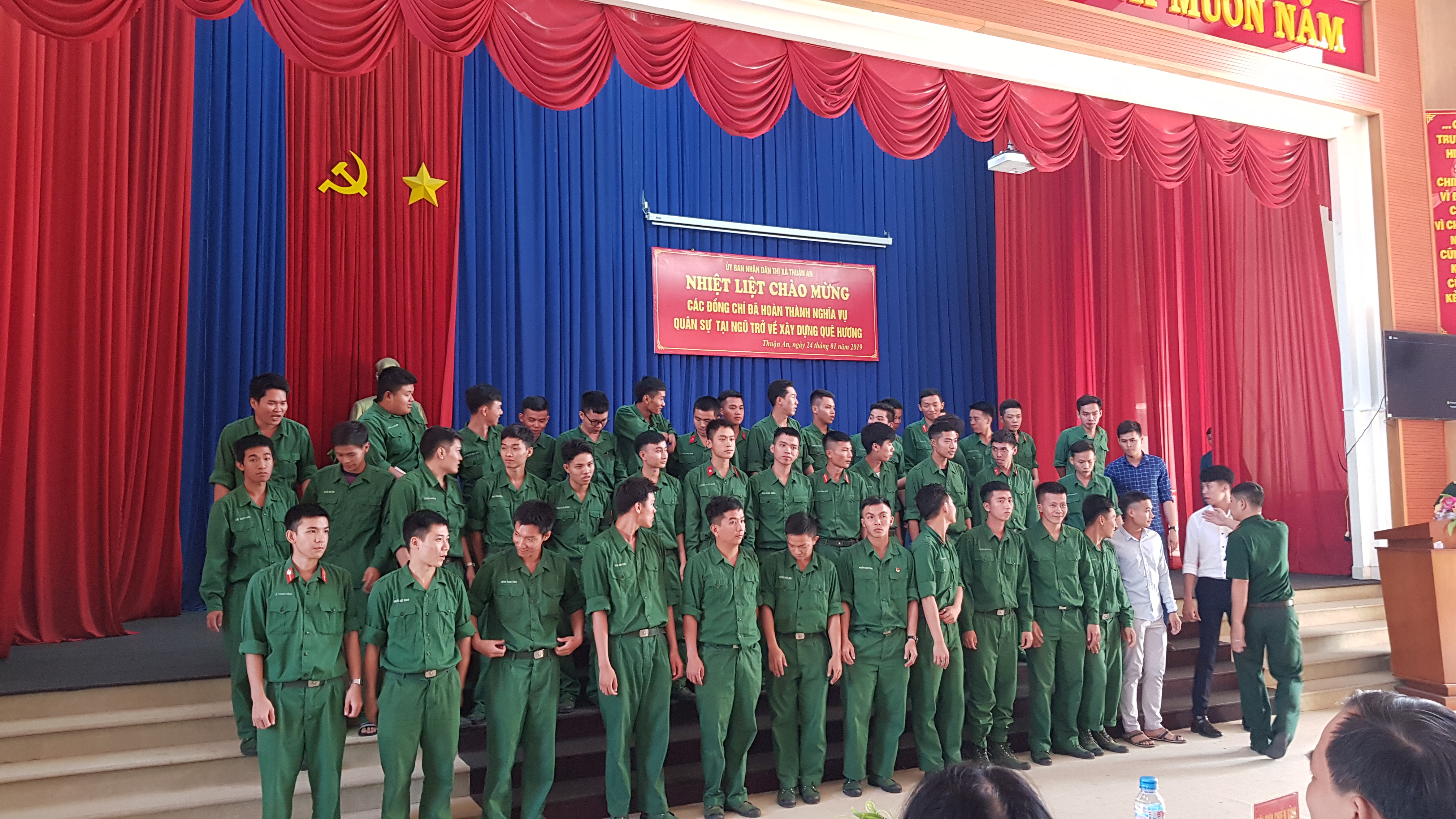 An, cùng với các đồng chí Ban chỉ huy quân sự và bộ đội xuất ngũ tham dự buổi lễ